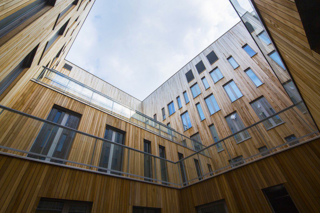 Other key features incorporate expandability and adaptability, optimum walking space, logistics and sustainability. This design is built around the patient and allows for mostly single patient rooms, which are bathed in daylight. Sustainable aspects include the green roofs, which not only insulate, but also slow the drainage of rainwater. Materials chosen for the interior and exterior ensure a warm atmosphere, and the building is also designed to be able to respond to future structural changes. Overall, a flexible, innovative building that beckons entrance.